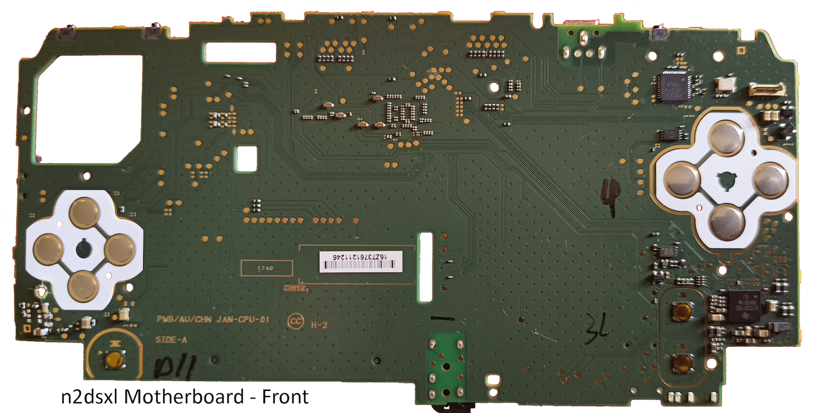 Front of an Australian New 2ds XL Motherboard. Note one of the shoulder buttons is snapped off. Using png this time as jpg didn't generate thumbnail.